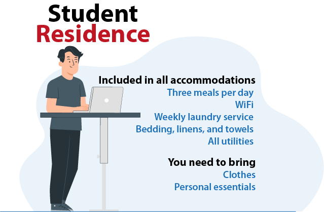 Students who are accepted to the program will receive their finalized housing assignment via email one month before their program start date. We’ll go over the specific rules and guidelines of your accommodation during the program orientation. This will give you a clear understanding of what to expect and ensure a comfortable stay.